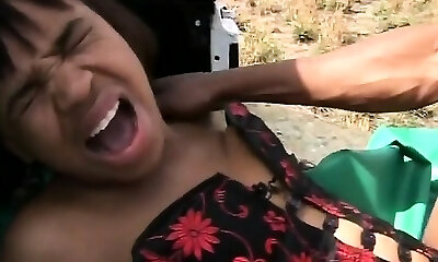 Rough outdoor nailing with a nasty African slut and huge