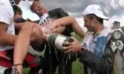 Incredibly dumpy blond teen got gangbanged by brutal guys hard