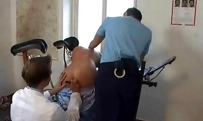 Medic inserts speculum into pretty c-cup blonde's lubed twat