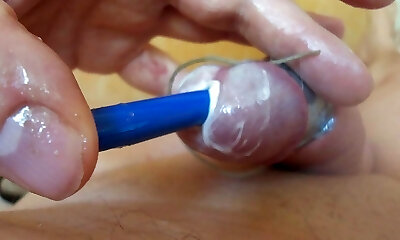 Peehole Play with Drilldo and Bladder packed with Cum
