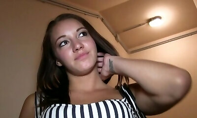 First-timer dark haired chick flashes her bootie and pisses in the public bus