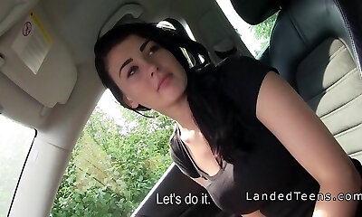 Mesmerizing babe Claudia Bavel tempts dude and teases him in the car