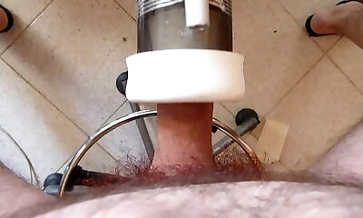 Man with dick in machine cock draining off