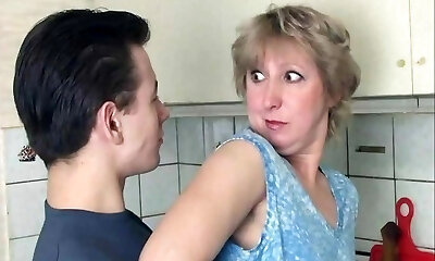 Beautiful mummy with saggy tits, hairy pubis & guy