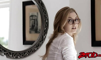 Pretty 18yearold redheaded hotty, Ashlyn Rae, wearing a conservative students uniform, soon has