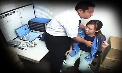 Japanese school director wanks in the office